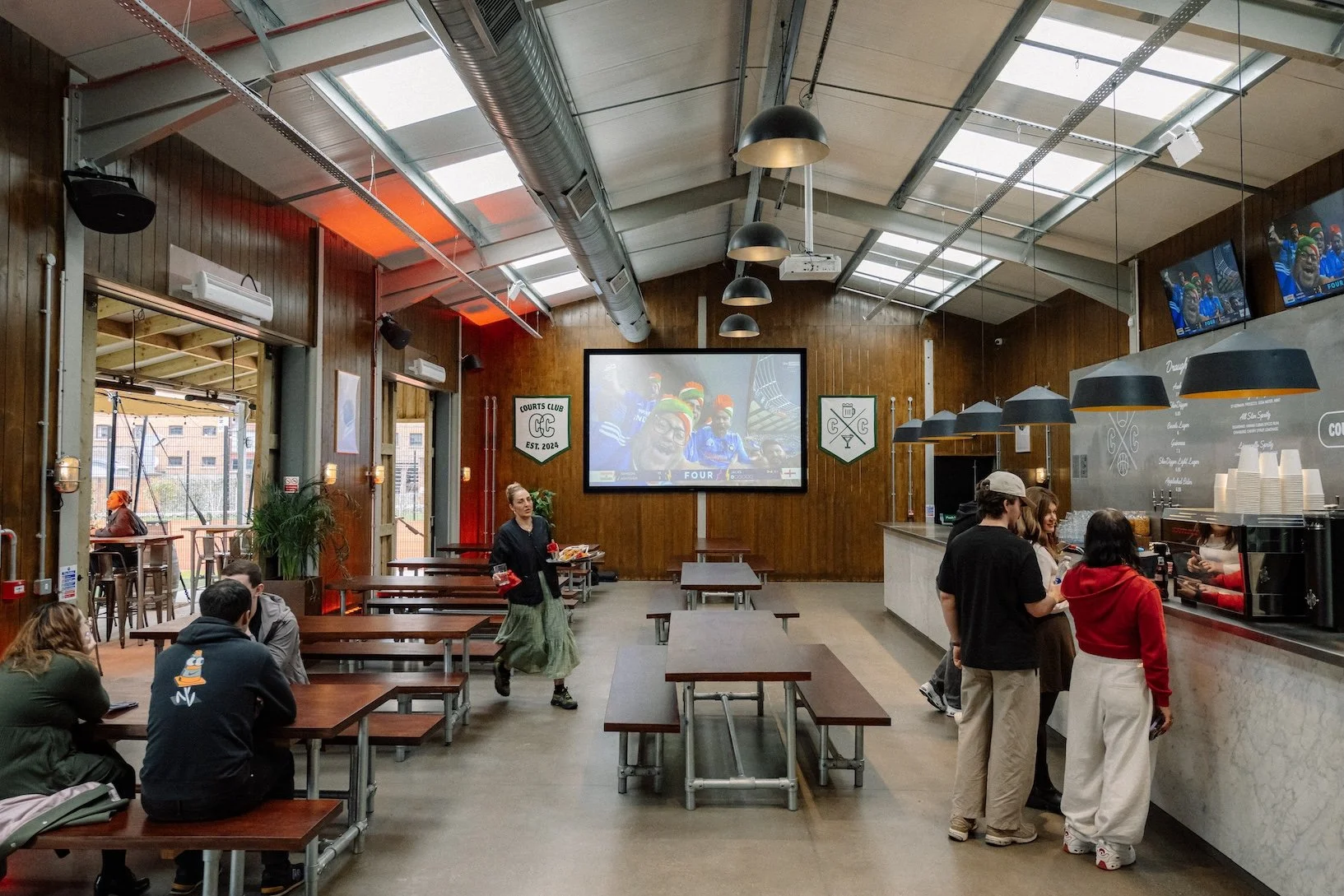 Our versatile Manchester venue features relaxed seating, an open-air terrace, giant screens for live sport, plus a tennis and basketball court for active entertainment. From fitness classes and sports screenings to music events, brand events, pop-ups and quiz nights, Courts Club brings sport, culture, and community together under one roof.